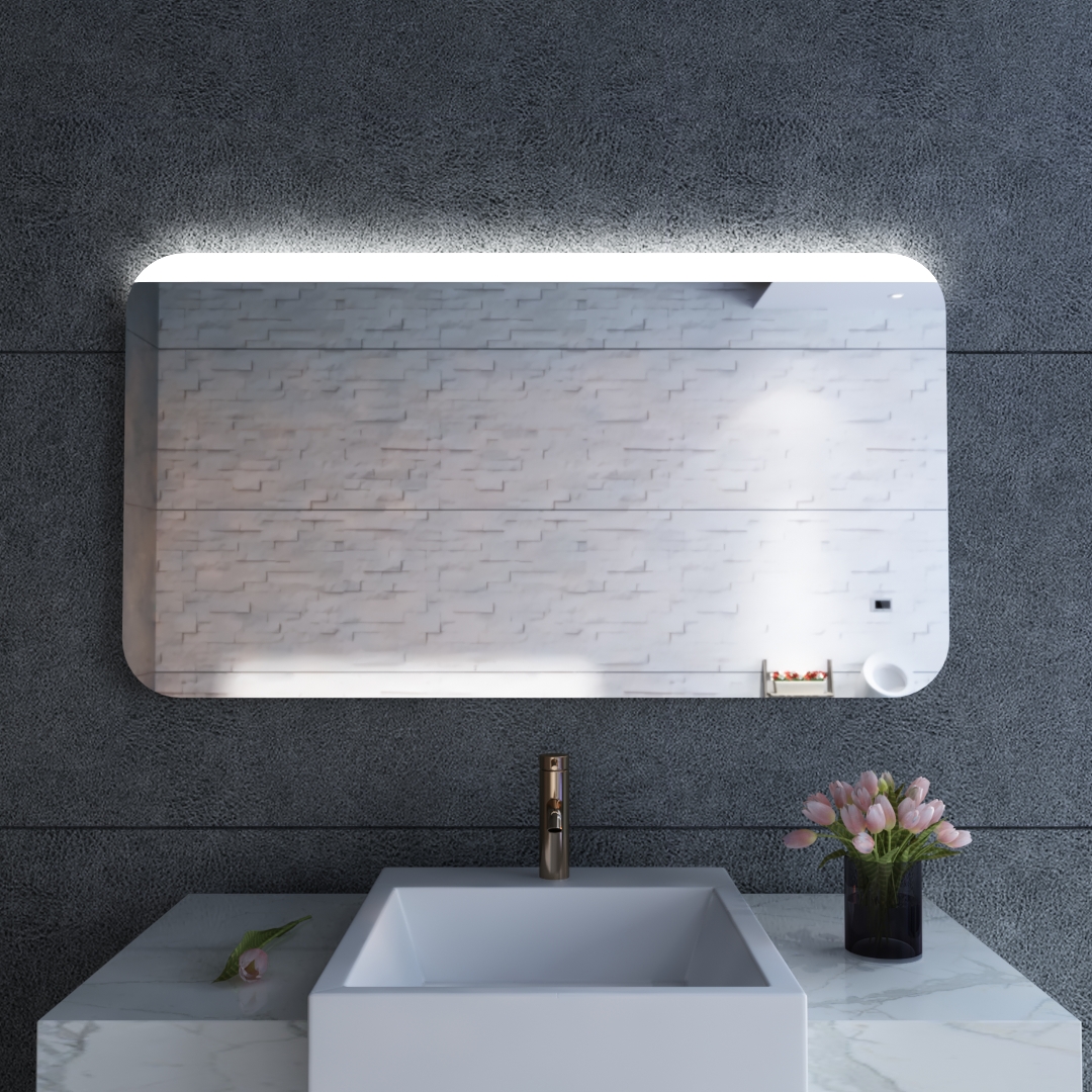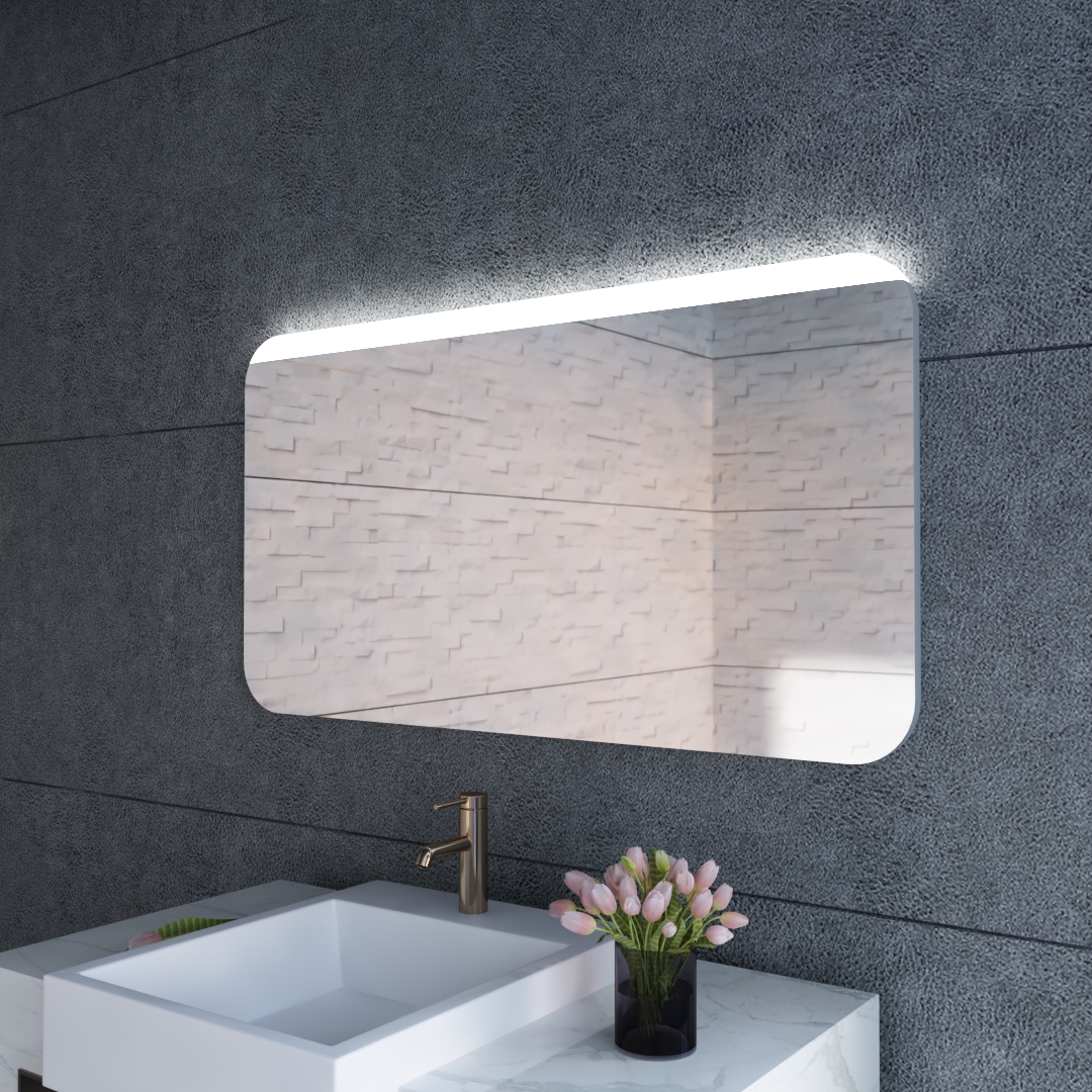 Ungewohnte Rundungen im Bad Müssen Badspiegel unbedingt eckig sein? Wer sich diesen Badspiegel mit abgerundeten Ecken ansieht, erkennt sofort das harmonische Auftreten dieses eindrucksvollen Spiegels für das moderne Bad. Wo industriell produzierte Massen